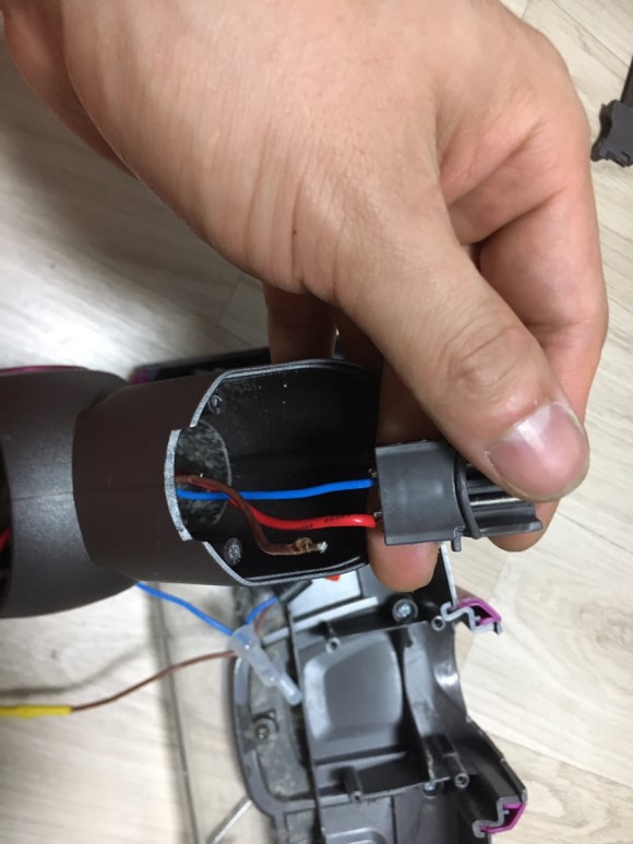 갈색선을 빼내고 빨간선으로 납땜을 새로 합니다