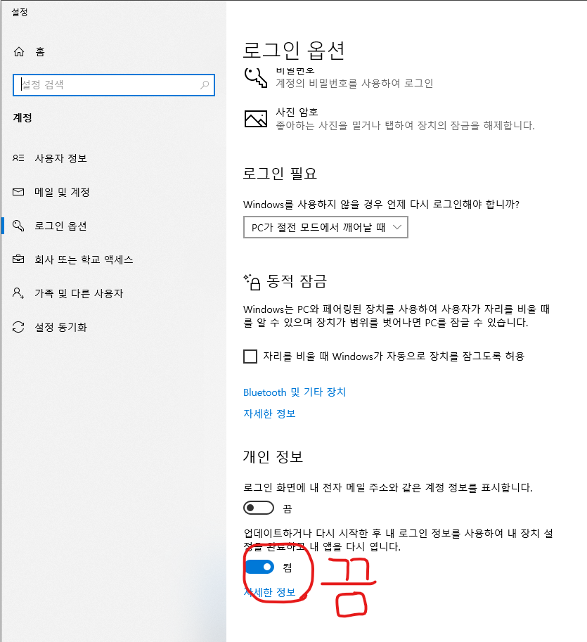 혹시나 이게 불편할수도 있어서 사용안함 설정을 해보려고 한다.