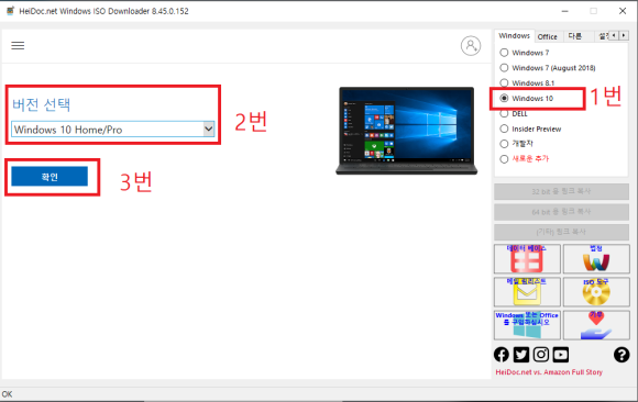 1. 윈도우 10 2. 버전(pro) 3. 확인