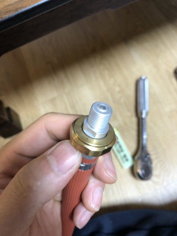 그런데 오링이 빨간색까지 막고 있어서 가스가 안나왔던 겁니다.