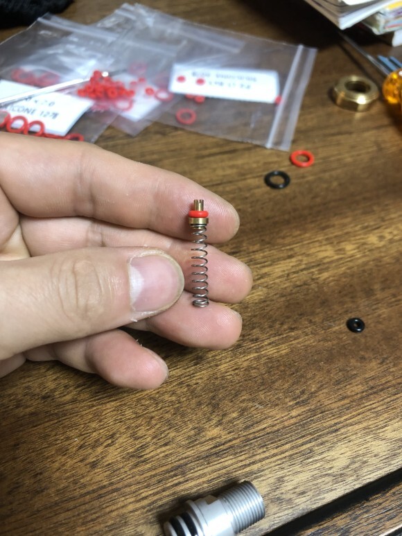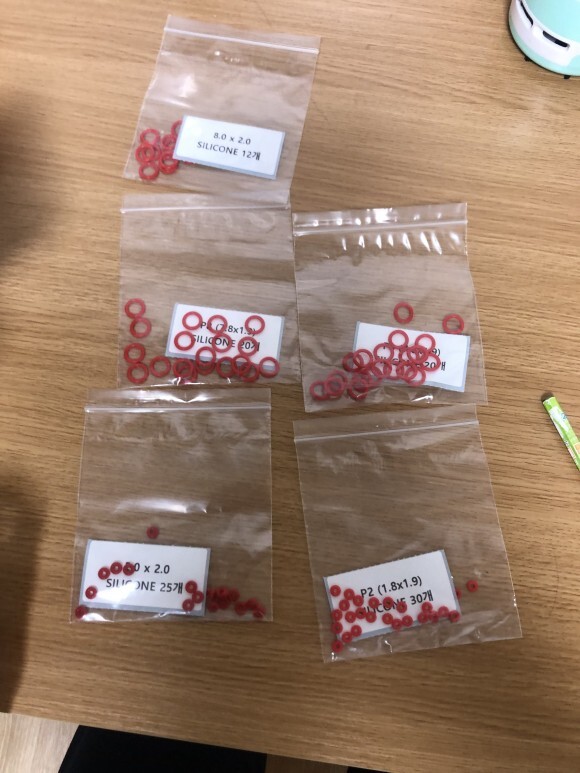 왼쪽 부품과 오른쪽 오링의 두께가 같아야 가스가 나오는 구조입니다.