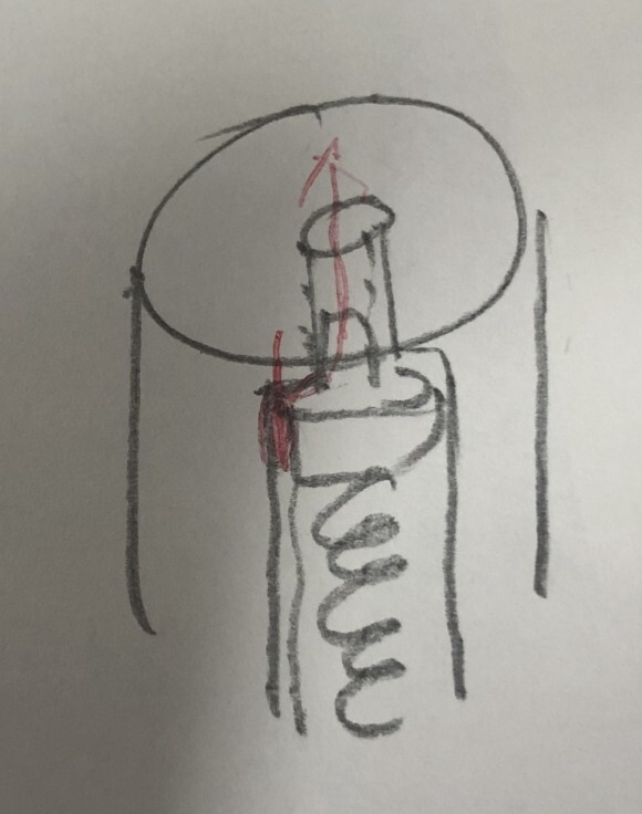 위에서 눌리면 빨간색 틈으로 가스가 새어 나오는 구조입니다.