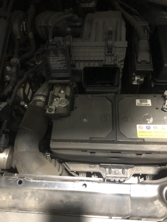 싼타페 더 프라임은 스탑앤고가 있는 모델로 AGM 90L 배터리를 사용합니다.