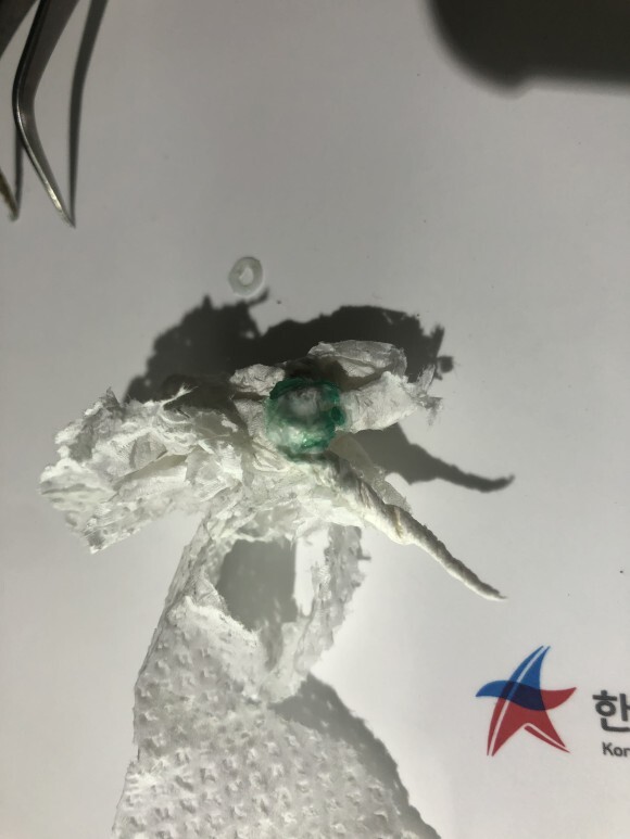 스티커를 제거하고 나면 중간에 흰색 와셔가 보입니다.