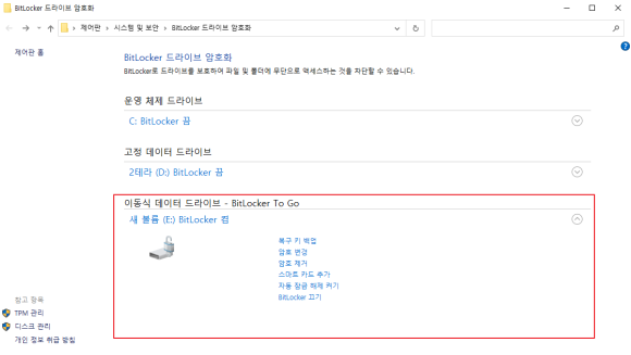 내 컴퓨터에서 BitLocker 관리에 가도 그런기능이 안보입니다.