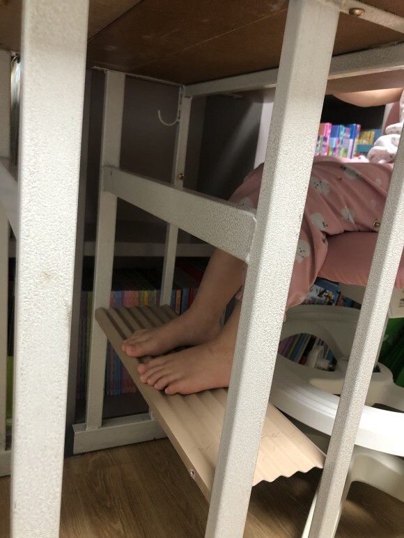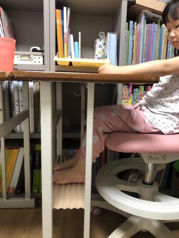 큰애가 작은애 발 받침대에 발을 올려서